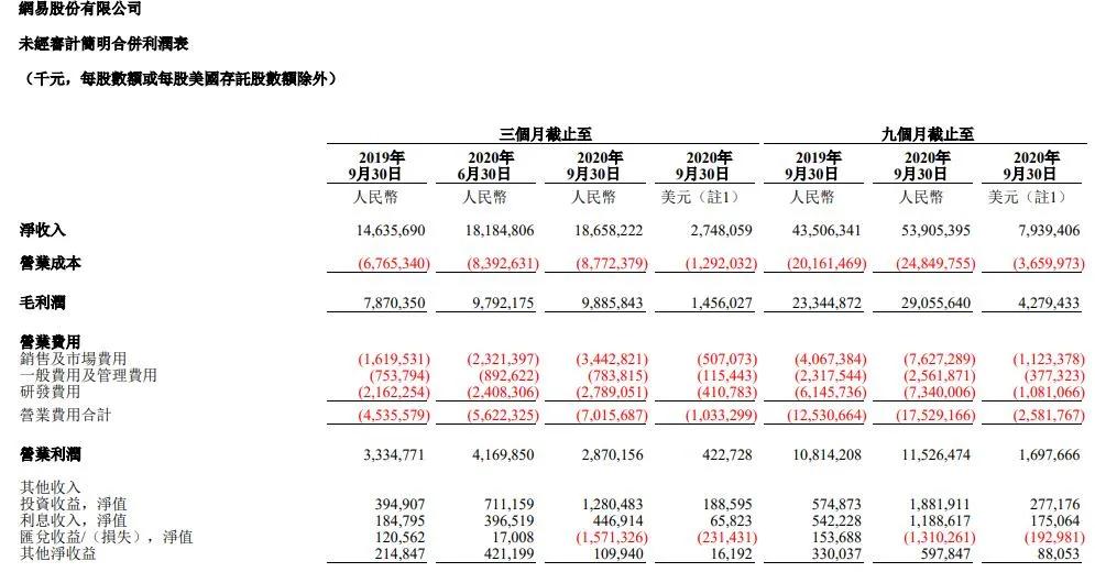 11月19日,网易发布了2020年第三季度财报。该季度,网易净收入186.58亿元,同比增长27.5%。