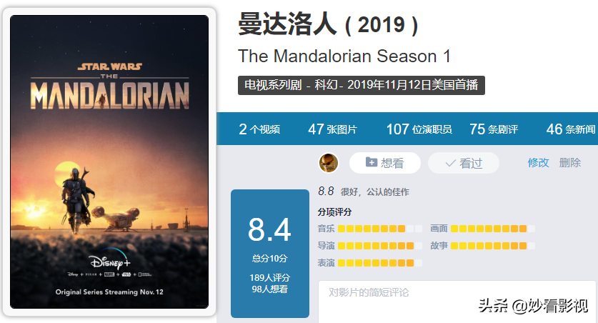 今天聊聊美剧《曼达洛人第1季》。