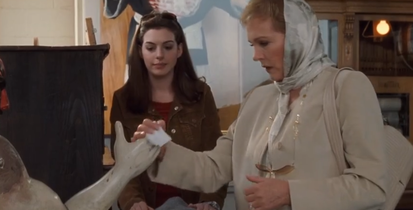 这部影片成就了安妮·海瑟薇,安妮·海瑟薇更成就了这部电影。整部影片宛如一个真人版的童话故事,安妮·海瑟薇就是从童话里走出来的公主,肌肤胜雪,浓眉大眼,眼神清澈,面对自己的王子时的羞涩,每一帧,都表现得淋漓尽致。