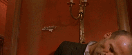 在《帕克》,他真的在50层楼的阳台外边吊着。