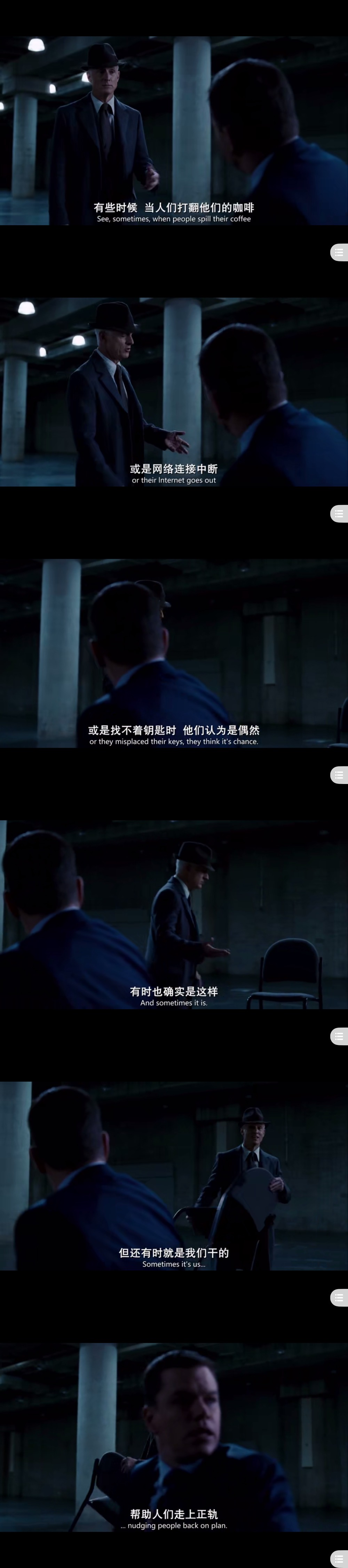 2011年于美国上映的科幻电影《命运规划局》讲述的就是一个无人知晓的组织“命运规划局“如何利用生活中的碎片影响,甚至改变人们的命运。