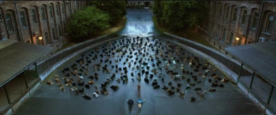 女孩的父亲在屠宰场工作的镜头,他和同事们例行公事,导演很明显塑造角色的冷漠形象,每当虐狗虐猫的新闻传出,由于很难依刑法处罚,不论舆论压力再大,对加害者都没什么实质的约束力。