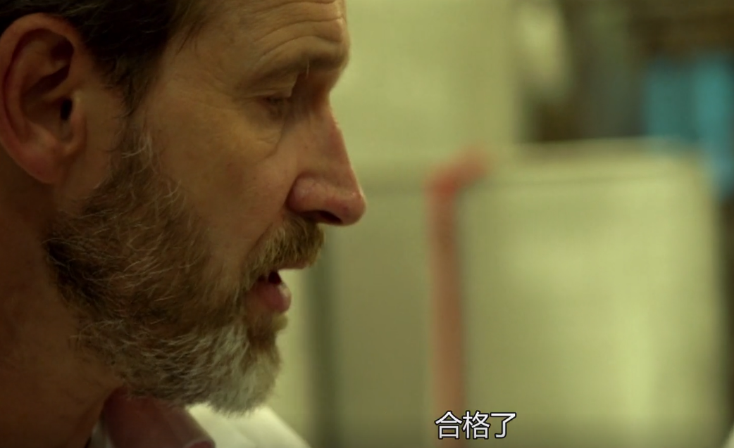 电影一开场,就是女孩父亲的工作现场,他是牛肉屠宰场的检验师,上班的环境是牛被宰割的(鲜血淋漓的)无尘室,穿梭在那些肉品与尸体间做科学检查,他的表情与其说是镇定,不如说是冷漠。