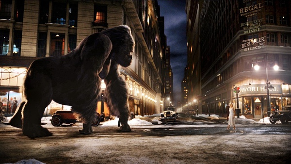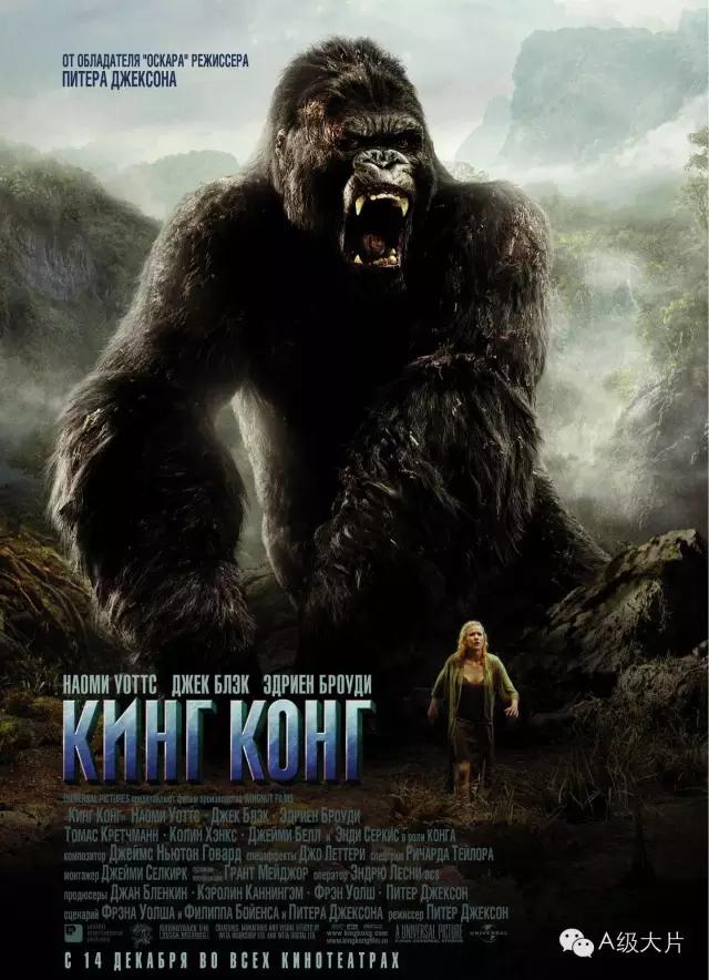 屌丝金刚为了追女神先后上演了手撕霸王龙、在帝国大厦打飞机等戏码,最后却以悲剧收场。经典的美女与野兽的爱情戏码加上无比炫酷的打怪兽视效把这部电影推上了高峰,金刚为爱奋不顾身的“情兽”形象打动了无数观众。