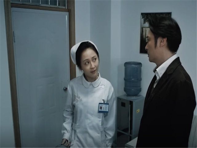 后来,心里过不去这个失恋坎儿的吴护士(姚笛饰)气不过,拿着一把剪子,杵在了麦医生的身后,和麦医生在屋里理论起来。这样做还不解气的吴护士,又在麦医生的宿舍安装了监控摄像头和监听器,监视着麦医生的一举一动。