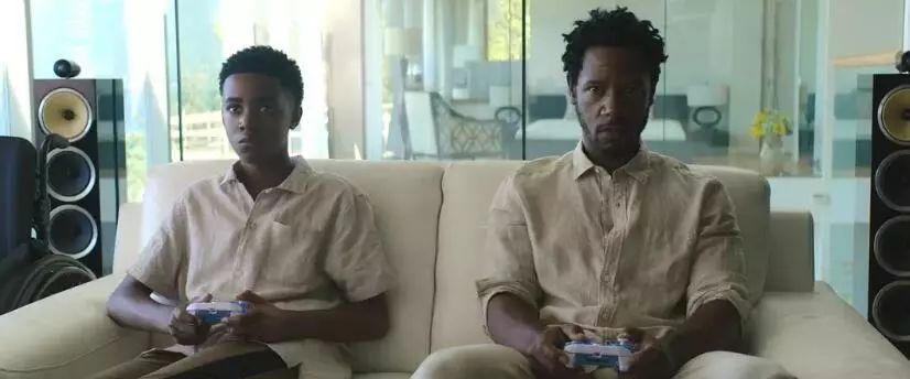 但正因为内奸的死亡,让两位黑人小哥觉察到了杀手和神秘男人想杀人灭口的动机,这也导致了影片最后的反转,劫匪之间的内讧给了警探们可乘之机。这些剧情显示了《逃出水泥地》非常考究的因果逻辑以及扎实的剧本功力,全片看下来几乎没有漏洞和马虎之处。影片通过最后的结局,以及那个出现过两次的游戏作为了影片题眼。游戏是两人配合,模拟在丛林中狩猎的暴力游戏,猎人需要相互配合,找寻猎物,屠杀得分,收集装备,然后循环往复,以屠杀更凶猛的动物作为升级目的。