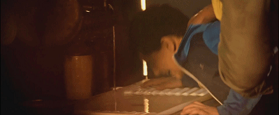 《战争幽灵》中有大量细腻地描摹士兵心理状态的场景,并不遗余力地想展现战争残暴的一面。两军在古堡对垒的一幕,人性最凶残的一面显露无疑。而这一幕又与影片高潮时刻的一幕相互呼应。