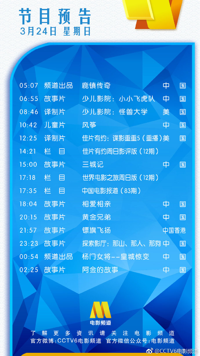 3月24日电影频道播出节目单!12:25 《谍影重重5》