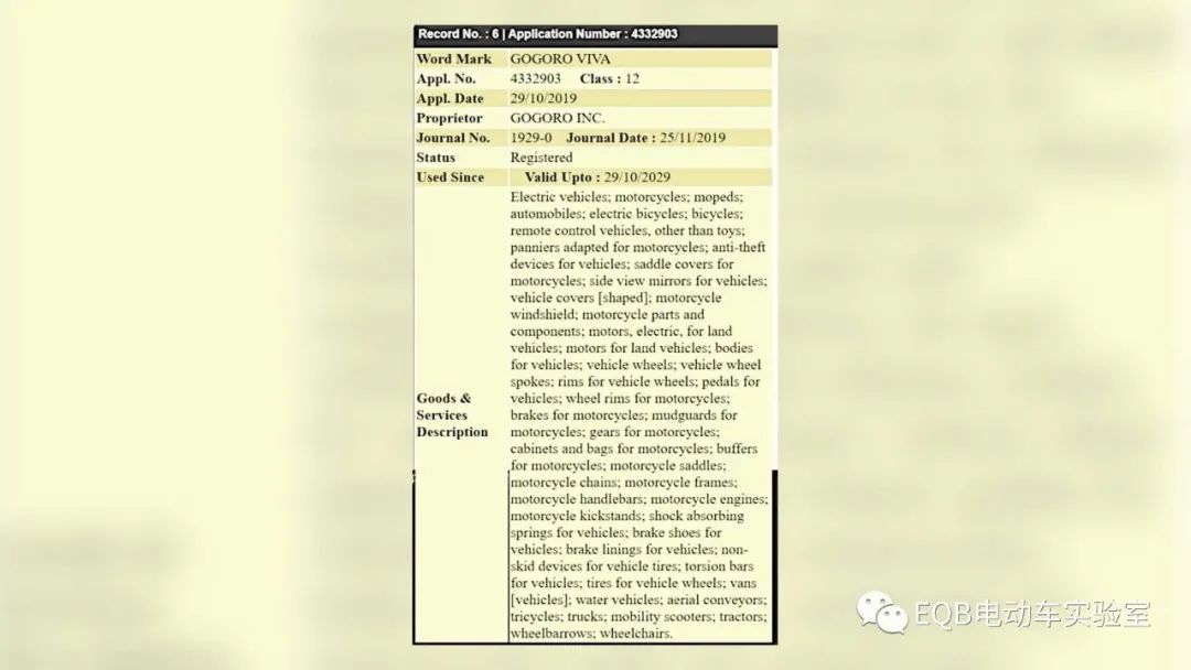 早在今年4月gogoro和印度车企hero motocorp就宣布双方将合作在印度铺设电池交换基础设施,hero motocorp将开发电动踏板车以拓展这一系统在印度的推行。5月,印度媒体rushlane就指出,gogoro先前已向印度知识产权局申请了一些商标,这其中就包括gogoro viva踏板车的一个商标。且资料显示商标的有效期至2029年10月29日。