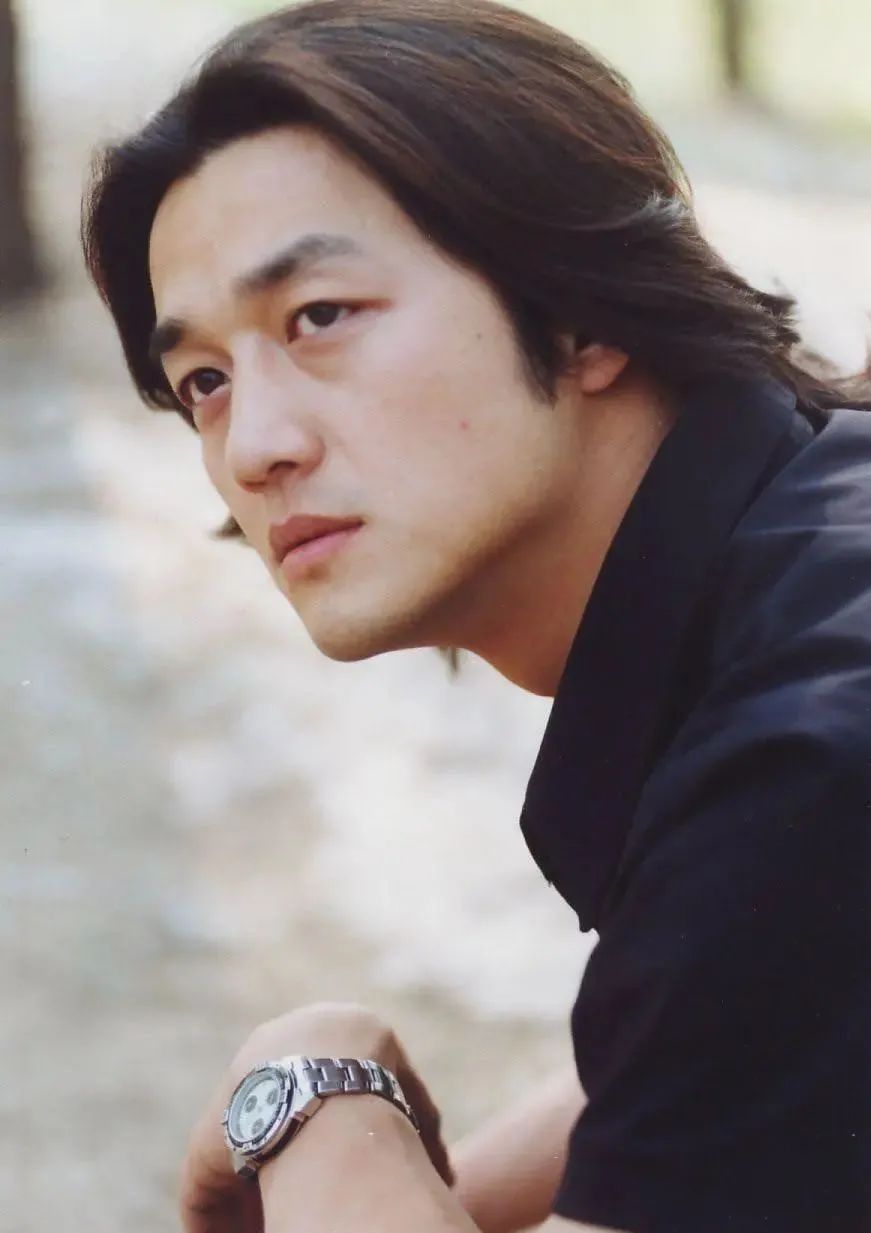 年轻时的李亚鹏,外表温吞笨拙,笑起来略带羞涩,脸会红,在一头微长发的加持下,有股文艺青年特有的青涩气质。