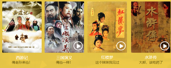 当然不能忘记最经典的这四部:《西游记》、《三国演义》、《红楼梦》、《水浒传》。