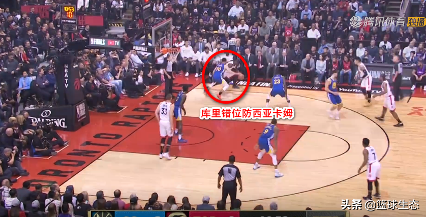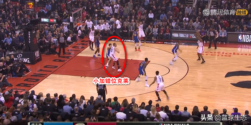 防守博弈送错位,小加攻击克莱,西亚卡姆找库里是比赛的关键。但这是无可奈何的事儿,伊戈达拉去顶伦纳德,格林背后协防,全队最精锐的防守资源都招呼伦纳德了。