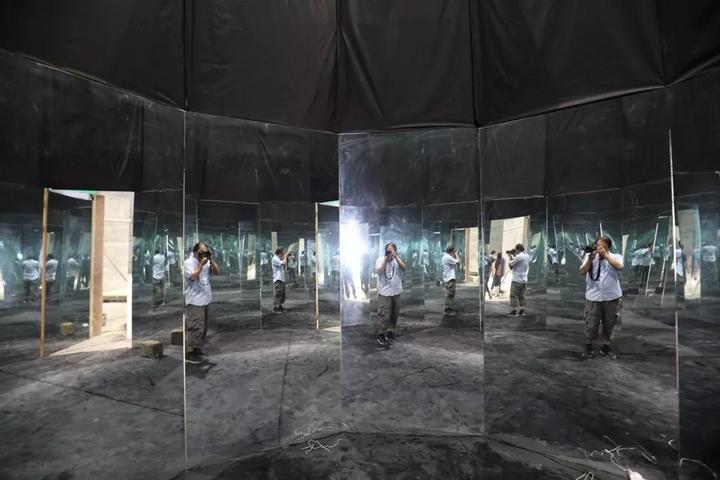 看似不起眼的木质外部支架结构外,内部是多面镜结构,人进去后,立马会出现好几个自己,非常神奇。仿佛进入虚幻梦境,让人顷刻如梦如幻、不辨真我。