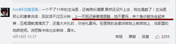网友质疑的主要原因莫过于:医院如此急迫的环境下,有时候吃饭喝水都顾不上,跑科室都是小跑或者快走,不相信穿着高跟鞋能跑得过平底鞋。