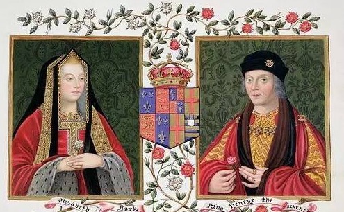 另一边呢,亨利七世拼命给自己脸上贴金。为了掩盖自己私生子的出生,亨利娶了前前英国国王,约克王朝爱德华五世之女伊丽莎白。这个婚姻将分裂的英格兰重新统一起来。而亨利都铎将自己兰卡斯特家族的红玫瑰与妻子约克家族的白玫瑰纹章结合起来,创造了英国皇家历史上最有权势、传承了最久的纹章:红白玫瑰——都铎玫瑰。"