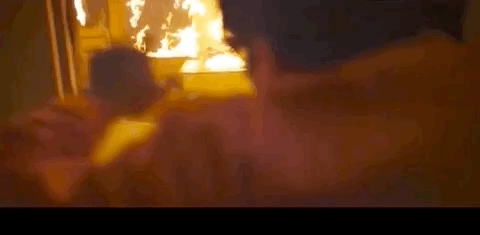 混乱中,狱长被大火困住命在旦夕。