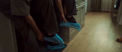 他们应孕妇的要求,套上鞋套,放下手机,转身向厨房走去。