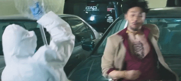 比如,在香港版里,负责疫情防护的工作人员,被处理成一支精通十八般武艺的精英小分队。