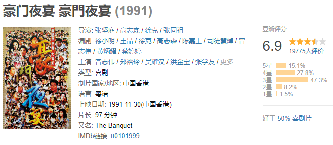 2. 原名《新豪门夜宴》,摆明是对标(碰瓷)30年前的《豪门夜宴》。