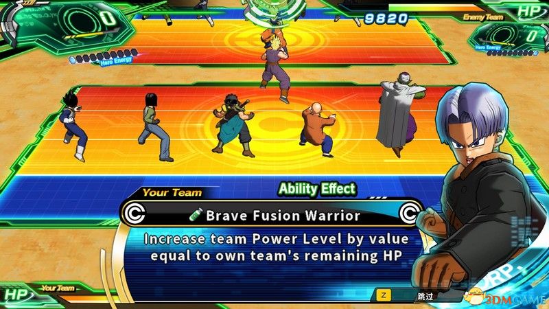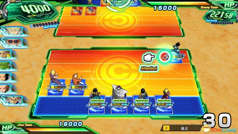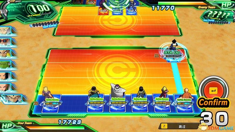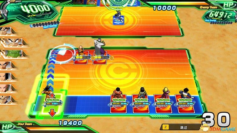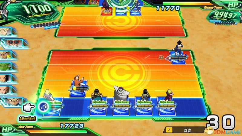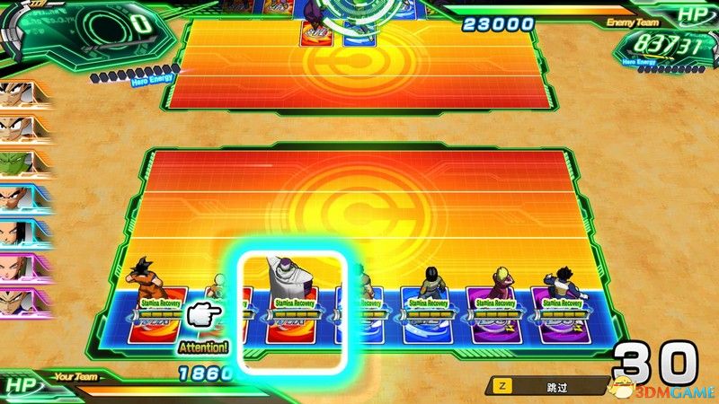 连接能力——需要在恢复区激活,指定英雄进行连接。可以看到,恢复区的龟仙人连接了战斗区的贝吉塔。这样龟仙人就可以给予贝吉塔连接加成了,效果是提升战斗区英雄的体力。