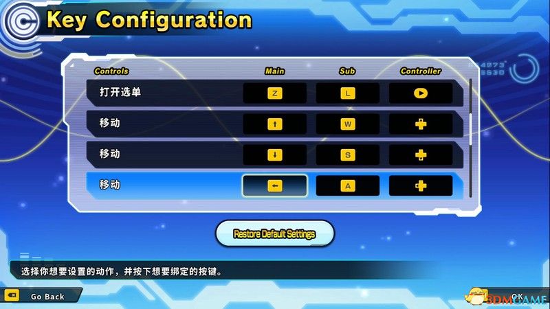 按键都有主按键(main),次、备用按键(sub)以及手柄对应(controller)。其中,数字键1、3或f3、f4键进行翻页操作。