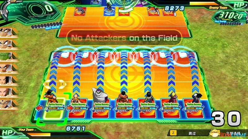 下方绿色的区域就是支援或者说恢复区。放在这个区域的英雄不会直接参加下一轮战斗。不过他们会恢复体力,有相关技能还可以给战斗成员提供支援。