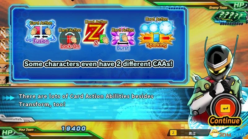 很多卡牌都有其caas能力,例如悟空的变身。你可以将悟空放置到战斗区前排,在接下来的战斗中启动其变身能力。
