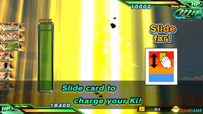 战斗时,能量挑战刚好按按在最大点时会有完美提示。这会极大的增强攻防效果。