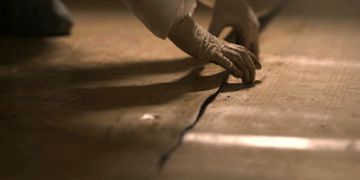 俯拍视角,房间由满到空,这无声的一分钟,是一个生命消逝的过程。