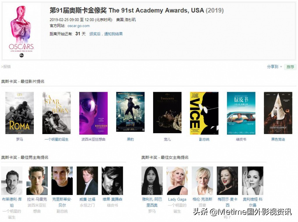 1 月下旬,奥斯卡公布了提名,并将于北京时间 2 月 25 日举行颁奖典礼。