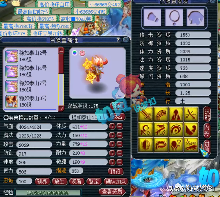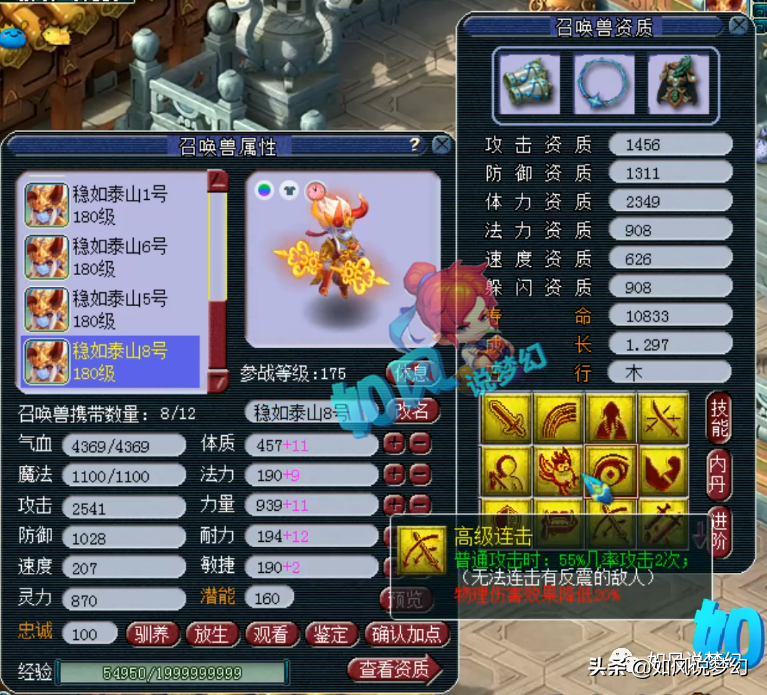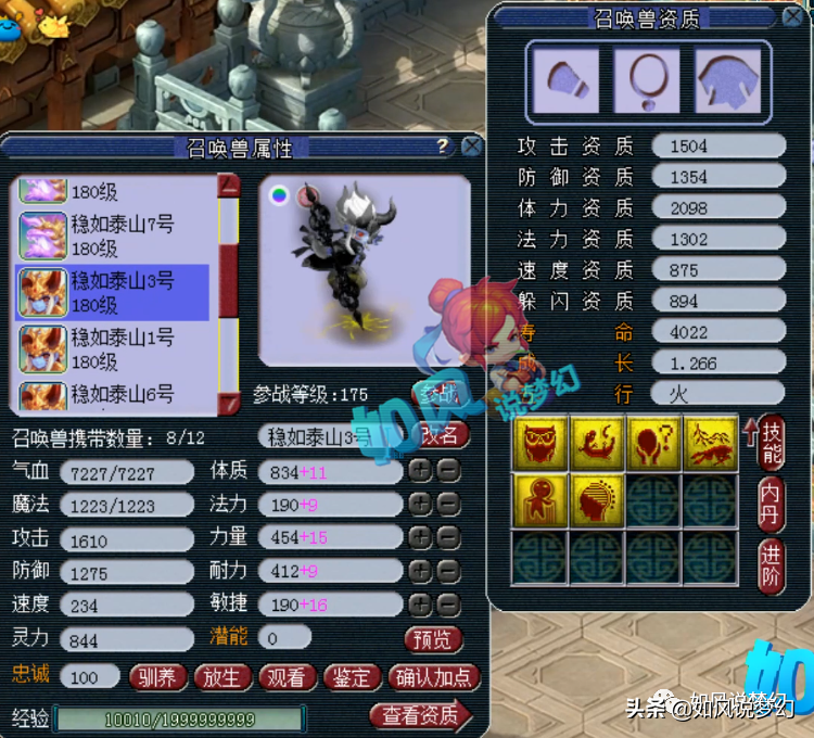 18技能童子,虽然是野生的,但是资质和成长都非常ok