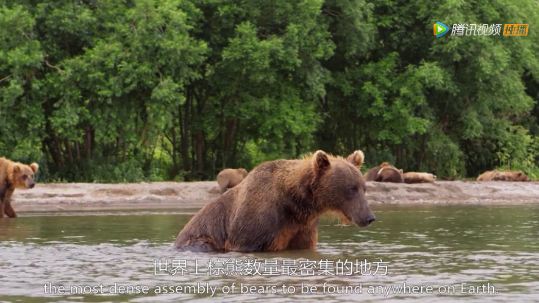 一直大熊游到远离岸边的湖深处,一个闷子扎下去,再上来,嘴里已经叼了一只鱼。