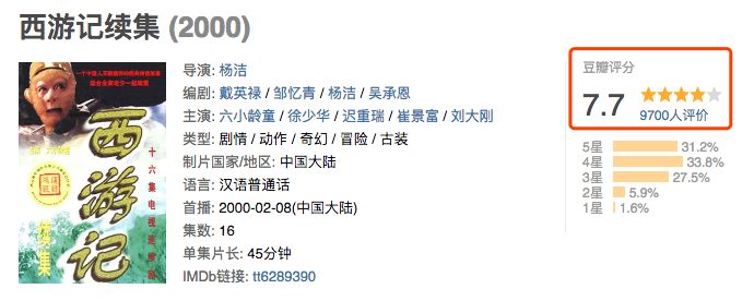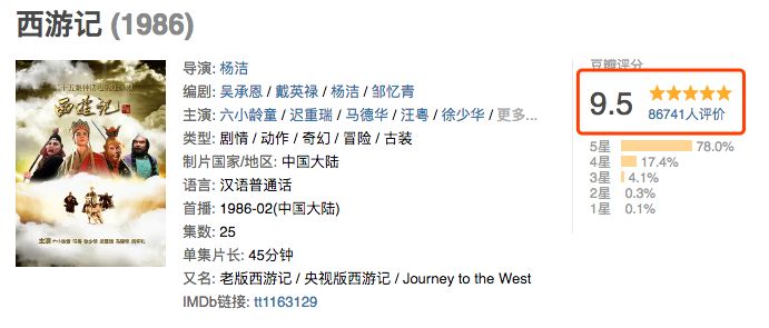 就拿我们的四大名著《西游记》来说吧,86年仅仅用一台摄像机拍摄,尽管现在看来五毛钱特效很是out,然而却成了我们几代人心中的神剧,豆瓣上给出了9.5的高分。