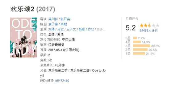 与之对应的还有《欢乐颂》,第一部,7.3分,在豆瓣苛刻的影迷评分里算是个不错的分数了,而第二部直接低于及格线甚远。对于在第一季里被这几个形形色色的姑娘激励着刺激着积极向上过生活的大部分粉丝来说,第二部无疑就是“毁情怀”。