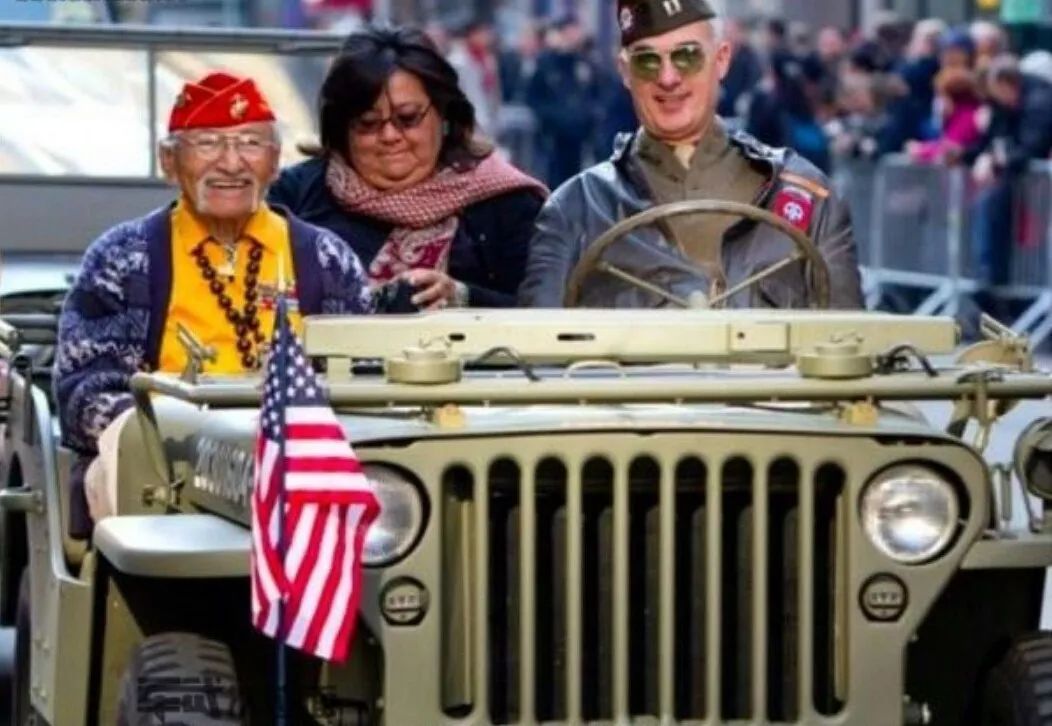 图注:当年的印第安老兵参加太平洋战场和欧洲战场的纪念活动。