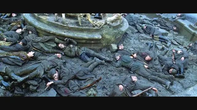然后,电影又开始浓墨重彩地描绘苏军缺乏武器弹药的荒诞状况,两个战士合用一把步枪、几发子弹。然后还告诉他们,如果你的伙伴倒下了,你就拿起他的枪继续战斗!这一点,我虽然不知道历史到底是啥样,就觉得想出这样主意的人怕不是脑子不好?一个有枪没子弹,一个人有子弹没枪,那这两个人一上战争,那不就是靶子?谁也打不响枪不是?