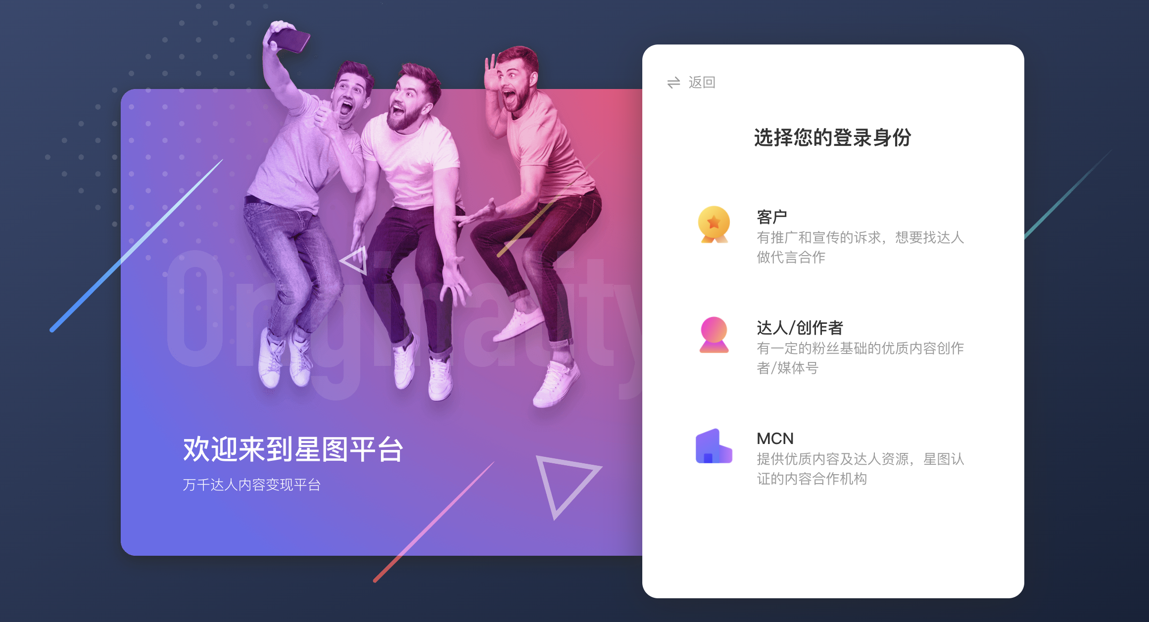 - 登录星图平台,选择【达人/创作者】身份-【我是头条创作者】,完善账号信息后进入「我的星图」大厅。