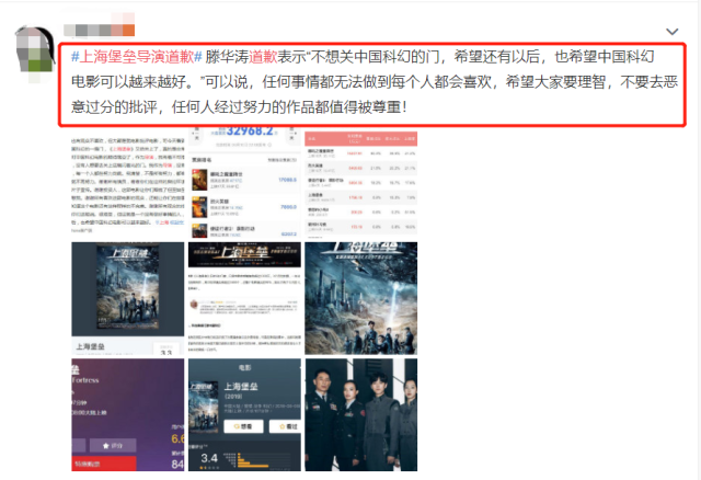 影片上映恶评如潮,就连导滕华涛都出来道歉,《上海堡垒》也成为中国科幻片之耻被钉在了华语影史的耻辱柱上。