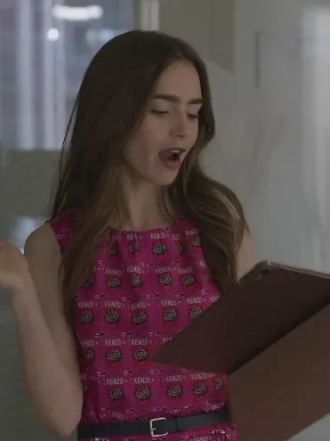 一身玫粉色的kenzo连身裙搭配一条细条腰带,脚踩一双vivienne westwood的白色短靴,“迪士尼在逃公主”emily在初登场时就带足了美式女孩的气息!