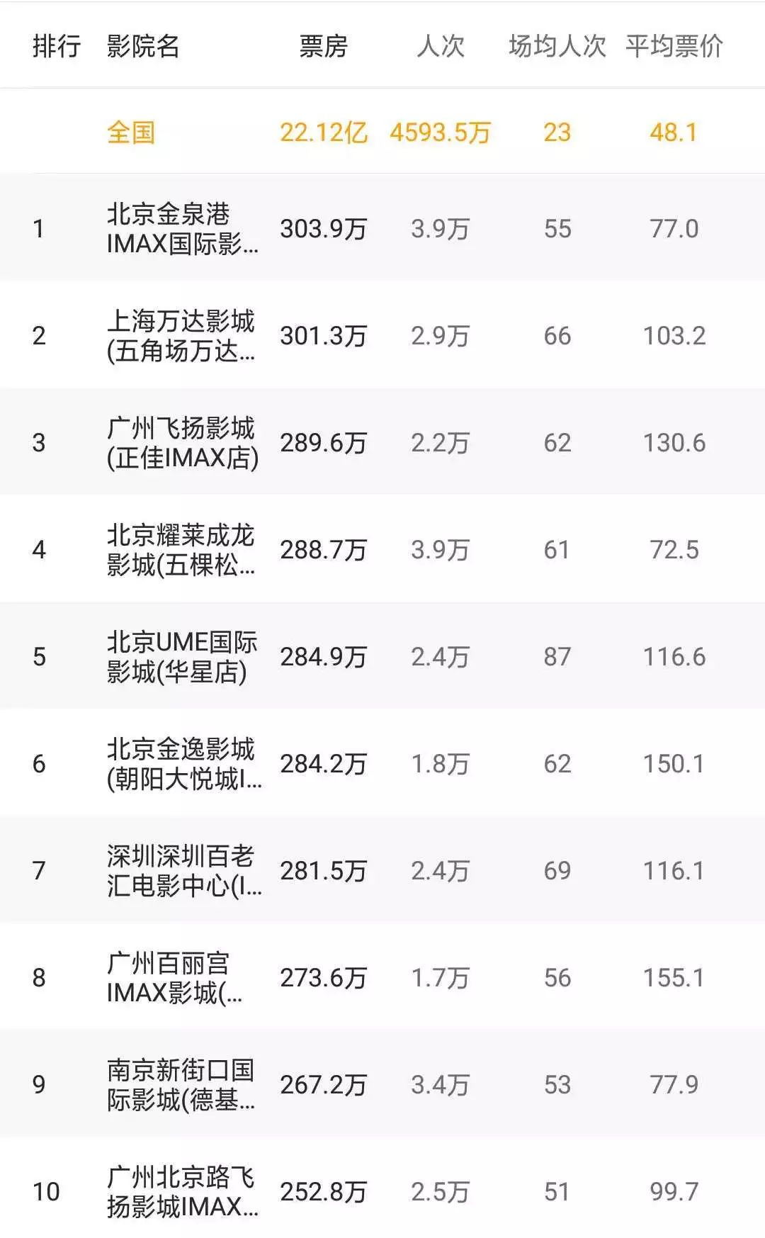 影院票房榜
