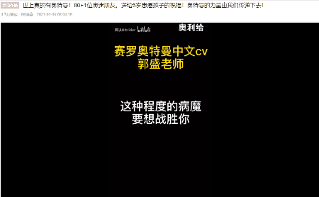 其中还有为赛罗奥特曼做配音的郭盛老师,他给牟熠打气说: