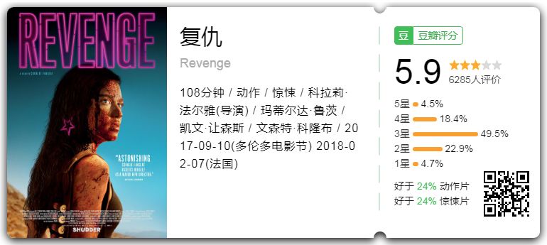 前段时间出源的[复仇](点击复习)是法国女导演科拉莉·法尔雅的处女作,讲了个被强奸后的女性,以一己之力杀掉三个渣男的故事。