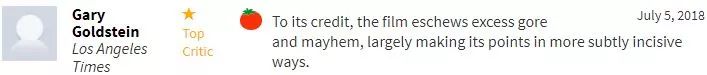 《洛杉矶时报》评论:“值得称赞的是,这部电影避开了过多的血腥场面和混乱场面,很大程度上,以更敏锐的方式表达了自己的观点。”