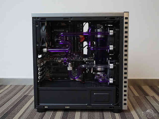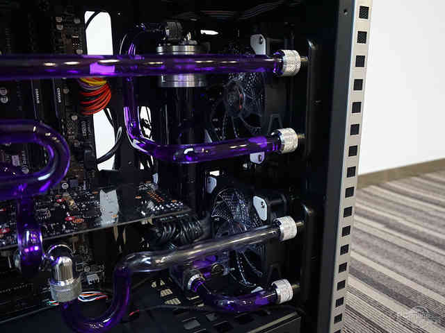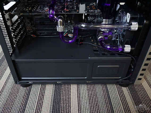 现如今,纯手工diy水冷的打造一直高烧不退,并且有越来越受追捧的趋势。从图中也可以看出,大水牛预言者farseer机箱支持纯手工水冷的安装。无论是绚丽的透明螺旋管、还是蜿蜒的闪亮的金属管,多彩的水冷液随心旋转自由奔放,在光污染的渲染下带来意想不到的视觉效果,同时更是为整个平台带来更高效的散热效果。