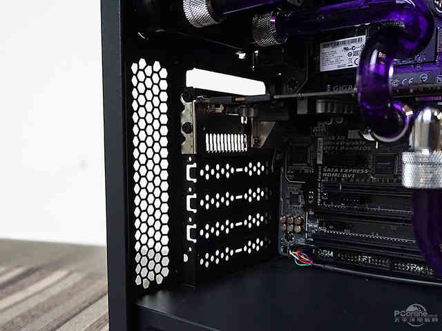 与其他中塔机箱一样,预言者farseer机箱背部同样设置了7个pci拓展口,七槽的配置足以满足追求性能的用户对于双卡平台需求,甚至三卡平台也不在话下。方便其他拓展硬件的安装,有很好的兼容性。