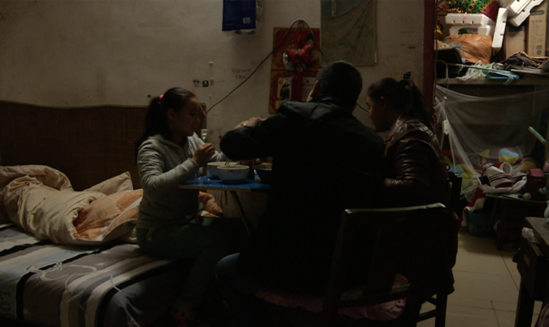 精准捕捉生活中自带的戏剧张力同时,《城市梦》还保留了热腾腾的人间烟火气。比如,摆摊之余,父母抓紧时间回家给女儿萍萍炒菜做饭,看着女儿大口吃饭时,眉梢眼角满满都是温情流露。他们的爱溢出屏幕,却又如万千普通家庭一样浓厚而朴实「什么是幸福,跟家里人一起吃饭就很幸福」。