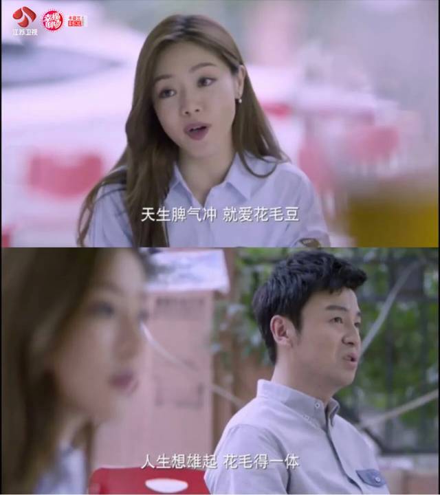在米阳点了个毛豆的时候,服务员问要花毛还是单毛时,米阳选单毛的时候,韦晶立马跟说道"天生脾气冲,就爱花毛豆",米阳也丝毫不落下风,随即回到"人生想雄起,花毛得一体"。然后乖乖听了韦晶的“建议”——花毛双拼。