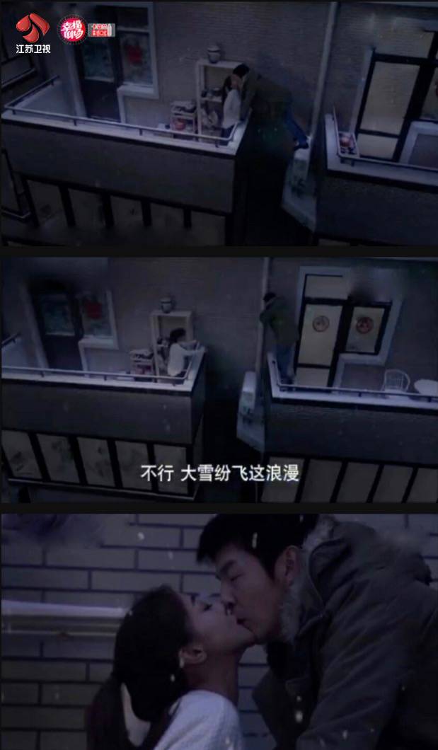 就这样露骨的,在漫天雪花中,米阳脚踩空调外挂机,以一个危险系数极高却又十分有难度的姿势,获得了女神的香吻一枚。
