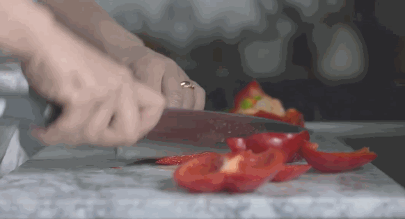 一边拿着刀重重的剁菜,一边用最温柔的语气说着最狠毒的话。
