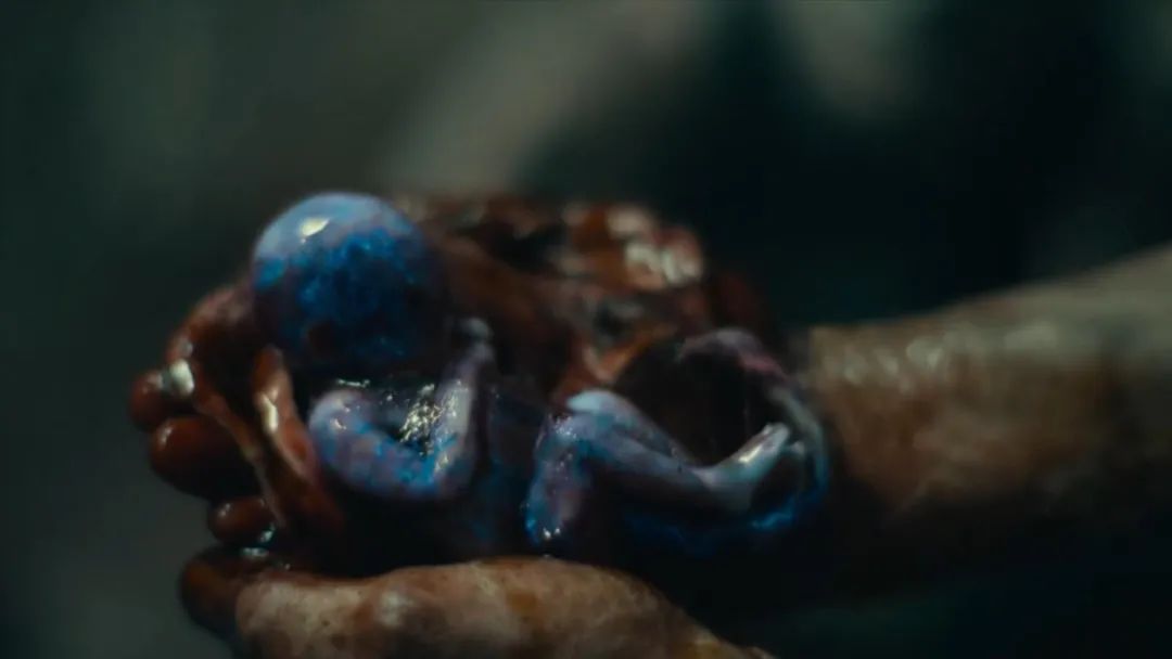 丧尸“国王”从没有脑袋的“王后”肚子里,剖腹产拿出一个刚成型的婴儿;